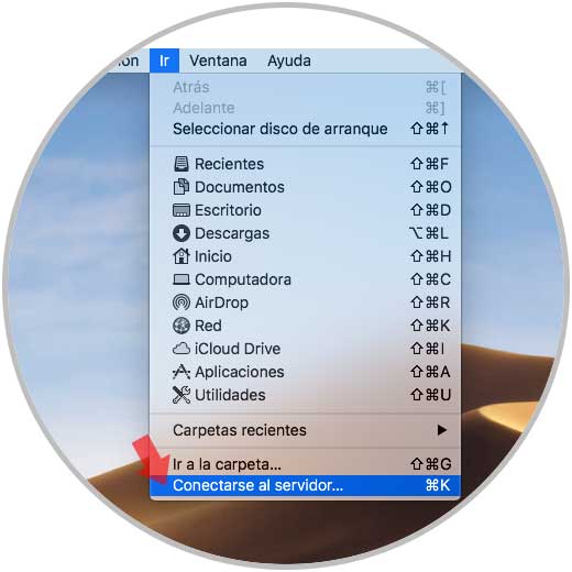 Ahora accedemos a macOS Mojave y desde el Finder vamos al menú Ir y seleccionamos la opción Conectarse al servidor o bien podemos usar la combinación de teclas Comando + K: