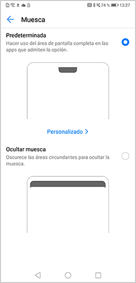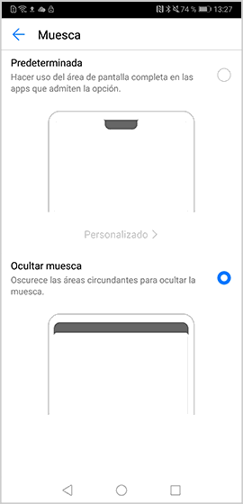 De esta manera vamos a poder configurar en la pantalla de nuestro Huawei P20 Pro si queremos que aparezca la muesca o no.