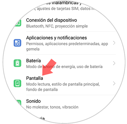 Una vez aquí, tienes que seleccionar el apartado de “Pantalla” para seguir con la configuración.