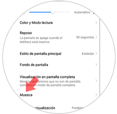 Una vez aquí verás diferentes opciones para la configuración de la pantalla. Debes seleccionar “Muesca”.