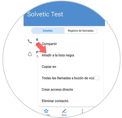 Ahora tenemos que seleccionar "Añadir a la lista negra" entre las opciones disponibles.