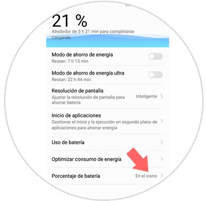 Aquí vamos a encontrar diferentes opciones. Si nos desplazamos a la parte inferior veremos que hay un apartado en el que pone "Porcentaje de batería. Tenemos que entrar aquí.
