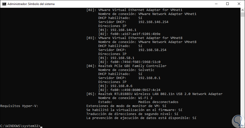 5. Usar símbolo de sistema para solucionar error Hyper-V Windows 10