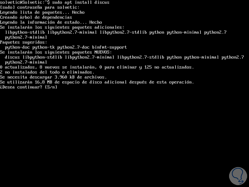 El paquete de discus se encuentra disponible para instalar desde los repositorios del sistema usando el administrador de paquetes en la distribución de Linux, de modo que podemos hacer uso de alguno de los siguientes comandos: