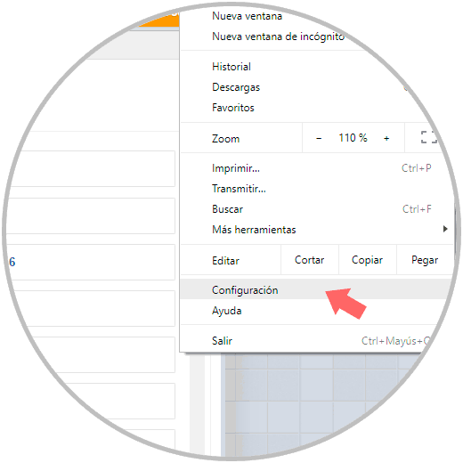 Para llevar a cabo esta tarea, pulsamos en el icono de menú del navegador y seleccionamos la opción “Configuración”: