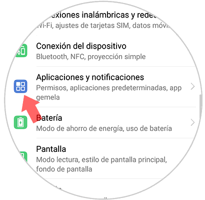 Ahora tienes que seleccionar entre todas las opciones,“Notificaciones y aplicaciones”.