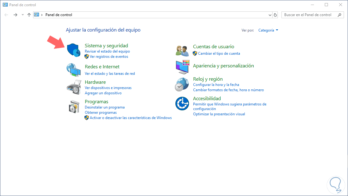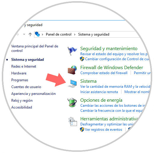 Allí damos clic en la sección "Sistema y seguridad" y será desplegada la siguiente ventana: