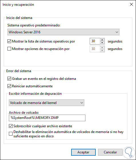 Solvetic explicará ahora la forma de como poder configurar nuestro servidor para evitar que se reinicie cuando surge alguno de estos errores de pantalla azul, ya que en un ambiente de producción esto representa algo crítico y es bueno poder ver bien el tipo de error que nos está generando el servidor.