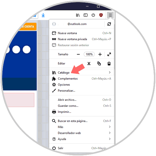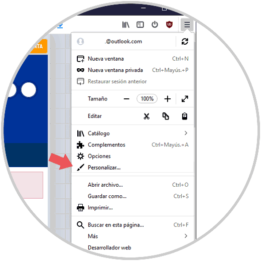 Ahora, si deseamos tener a mano siempre el botón de "Descargas" en Quantum, debemos pulsar de nuevo en el menú del navegador y seleccionar la opción "Personalizar":