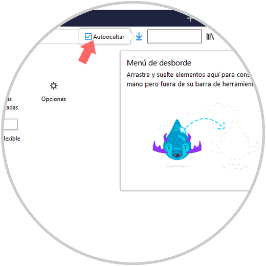 Para lograr esto, daremos clic sobre el icono de "Descargas" y activamos la casilla "Autoocultar" la cual se despliega automáticamente. Pulsamos en el botón "Hecho" ubicado en la parte inferior derecha del navegador