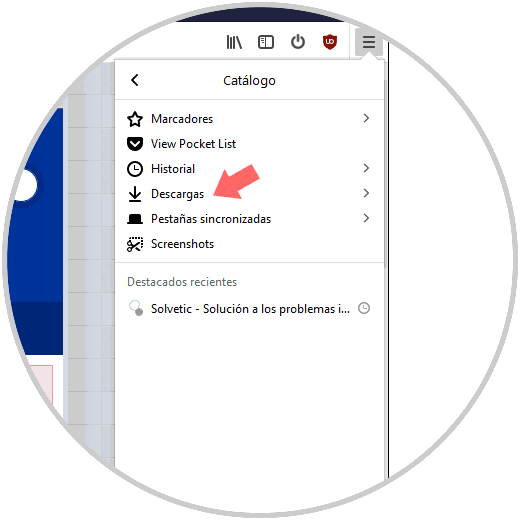1. Cómo acceder a las descargas desde el menú de Firefox Quantum