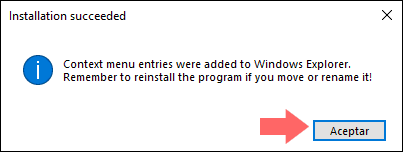 Recuerda que en caso de mover la aplicación a una carpeta diferente, no funcionará la aplicación.