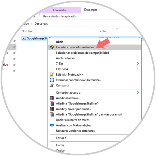 Para instalar GoogleImageShell solo para el usuario actual del sistema, debemos ejecutar el archivo .exe. y si se desea instalar GoogleImageShell para todos los usuarios, debemos dar clic derecho en el archivo .exe y seleccionar la opción "Ejecutar como administrador":