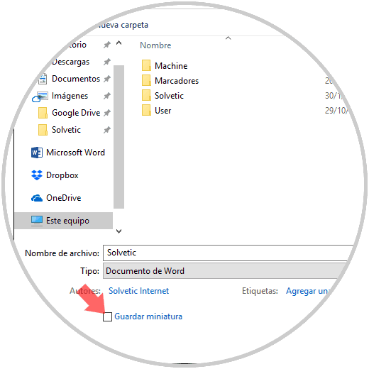 7. Evitar almacenamiento de miniaturas en el archivo para reducir tamaño de documento Word 2019, 2016