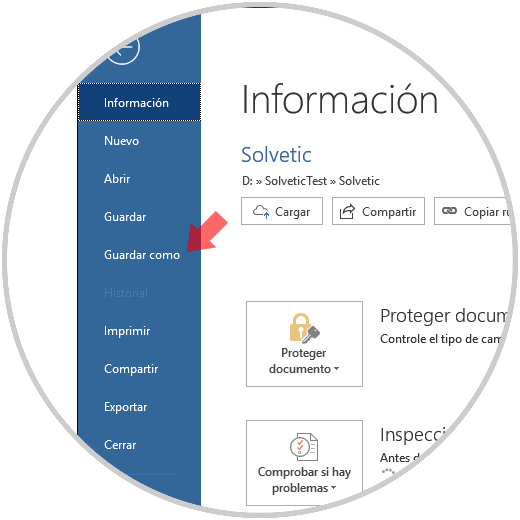Para ello, iremos al menú "Archivo" y seleccionamos la opción "Guardar como":