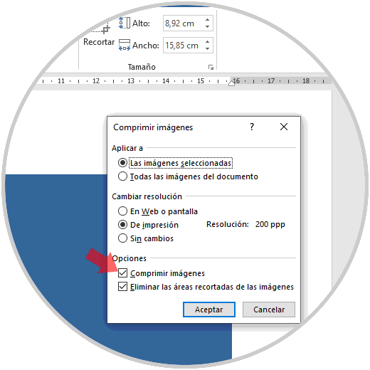 4. Comprimir las imágenes de forma integrada para reducir tamaño de documento Word 2019, 2016