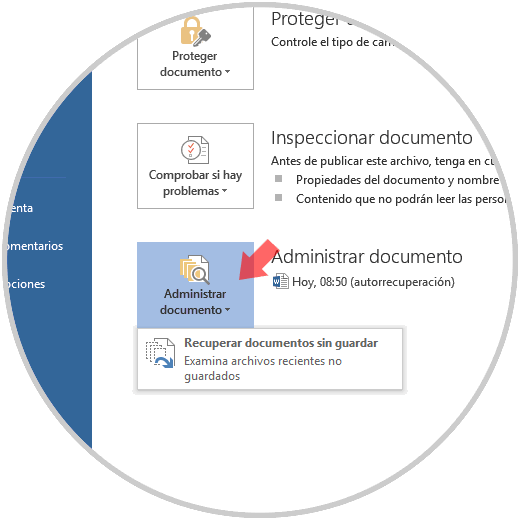 Para esto iremos a "Información" y allí damos clic en la sección "Administrar documento":