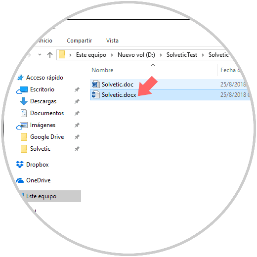 Después será necesario indicar la ruta y nombre para guardar el archivo con el nuevo formato. Microsoft Word lleva a cabo esta conversión creando una nueva versión del documento en el nuevo formato .docx; de modo que aun estará disponible la versión anterior de .doc y podremos validar la diferencia de tamaño entre ambas extensiones: