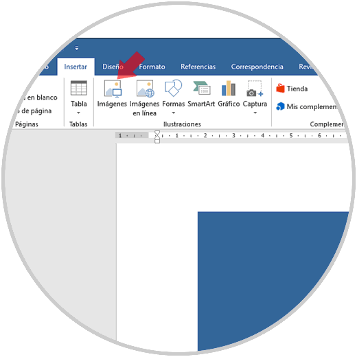 En este caso Solvetic recomienda que en primer lugar se hagan las tareas de edición respectivas, si aplica, a la imagen en cualquier aplicativo de imágenes; para que después de esto se guarde en algún Iugar del disco y posteriormente vayamos al menú "Insertar" y en el grupo Ilustraciones seleccionemos Imágenes: