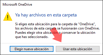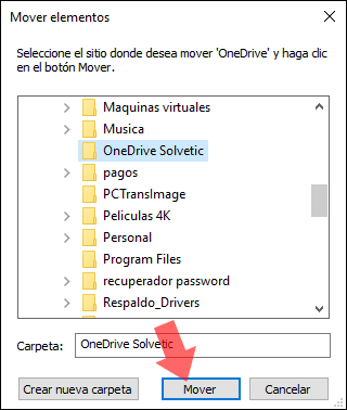 Iniciará el proceso de reubicación de la carpeta de OneDrive: