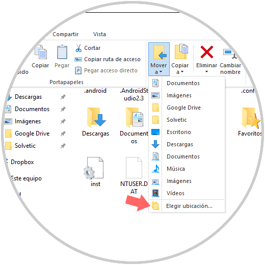 En el listado desplegado seleccionamos la opción "Elegir ubicación" y en la ventana emergente seleccionaremos la ruta donde se ha de mover la carpeta de OneDrive.