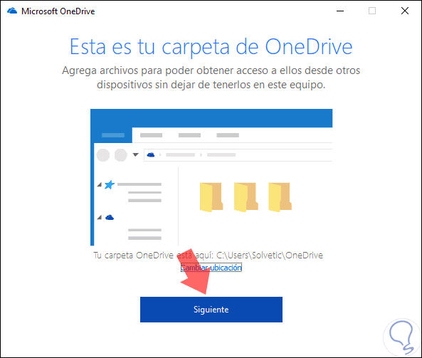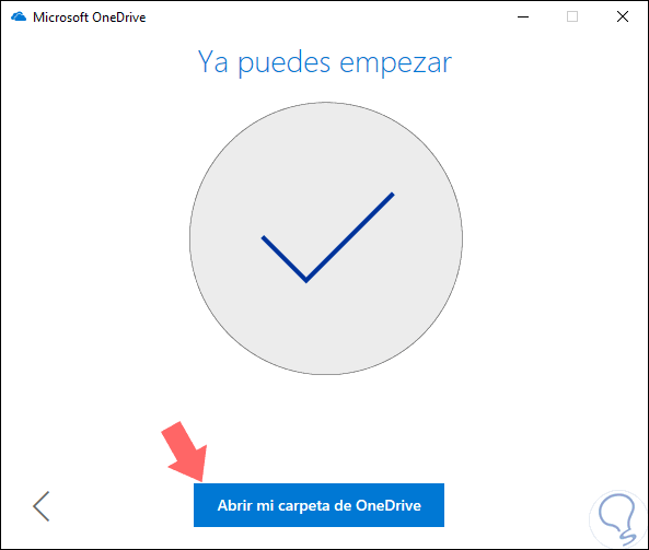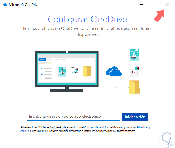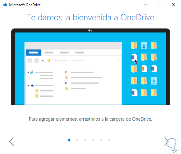 Automáticamente se desplegará el asistente de OneDrive. Podemos cerrarlo para continuar con el proceso de configuración.
