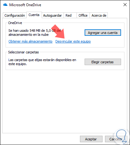 Se desplegará la siguiente ventana y allí iremos a la pestaña "Cuenta", donde será necesario que demos clic en la línea "Desvincular este equipo":