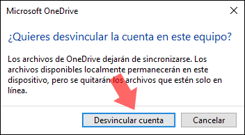 Se desplegará el siguiente mensaje. Pulsamos en el botón "Desvincular" cuenta para completar el proceso.