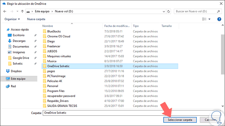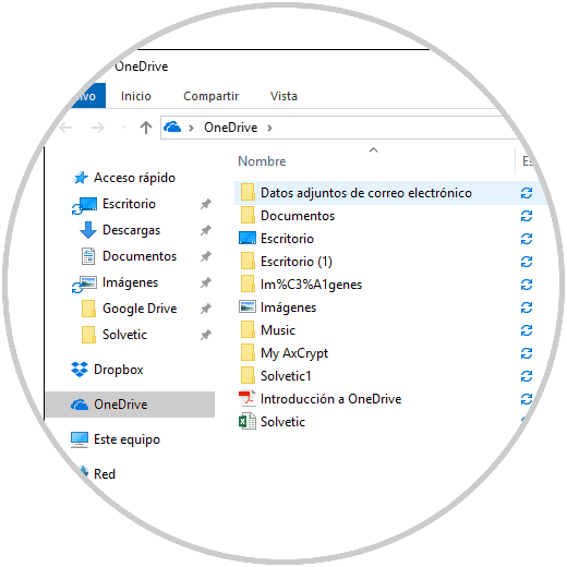Una vez finalicemos este proceso, la carpeta de OneDrive ahora sincronizará los archivos en la nueva ubicación que hemos definido y así evitaremos usar espacio del disco local C y si aprovechar medios externos o particiones para todo lo relacionado con el respaldo de OneDrive en Windows 10.