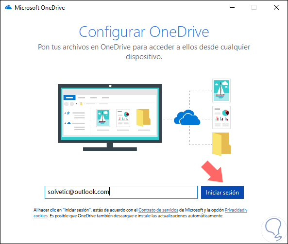 Una vez el proceso concluya, pulsamos de nuevo en el icono de OneDrive y ahora debemos ingresar el correo electrónico para iniciar sesión: