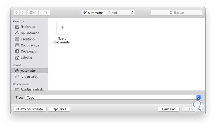Para acceder a Automator iremos a Spotlight y al momento de acceder veremos lo siguiente: