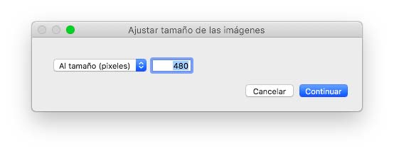 Allí ingresamos el valor deseado del nuevo tamaño en el campo respectivo y pulsamos en el botón Continuar para aplicar los cambios.