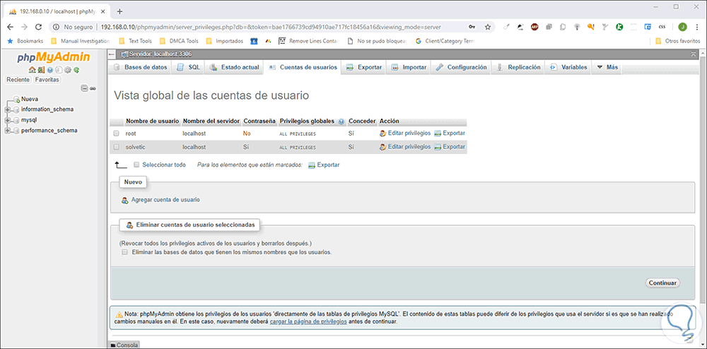 2. Cómo configurar usuarios y privilegios de phpMyAdmin Debian 9