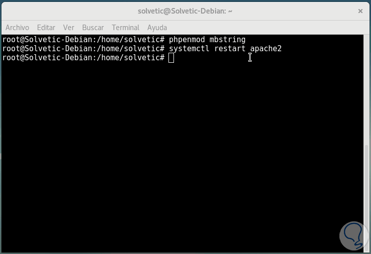 phpenmod mbstringFinalmente, reiniciamos el servicio para aplicar los cambios: