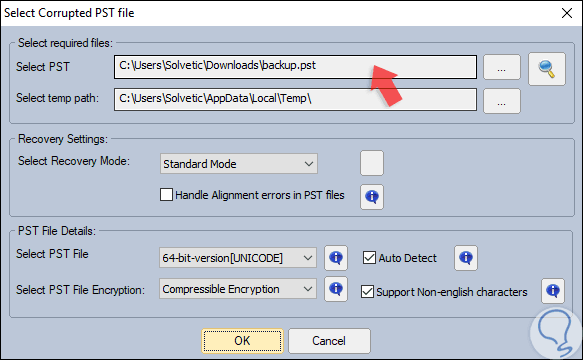 Solvetic se centrará en los archivos .pst para este tutorial.
