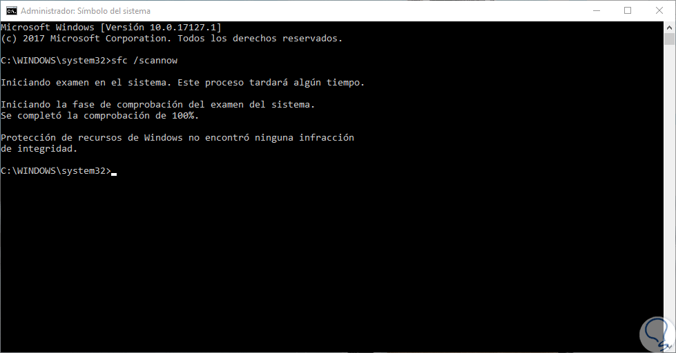 En caso de que veamos el mensaje “Protección de recursos de Windows encontró archivos dañados y los reparó correctamente", será necesario reiniciar el equipo en modo normal y luego imprimir para validar su función.