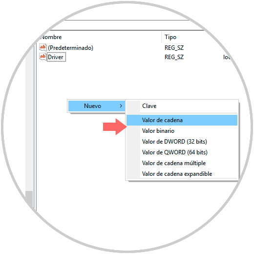 En caso de que no exista, daremos clic derecho en algún espacio libre y seleccionamos la opción “Nuevo / Valor de cadena”: