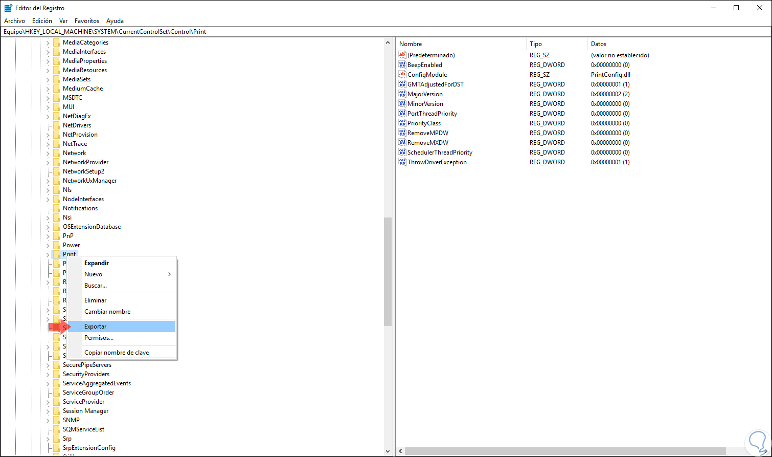 Daremos clic derecho sobre la carpeta “Print” y seleccionamos la opción “Exportar”: