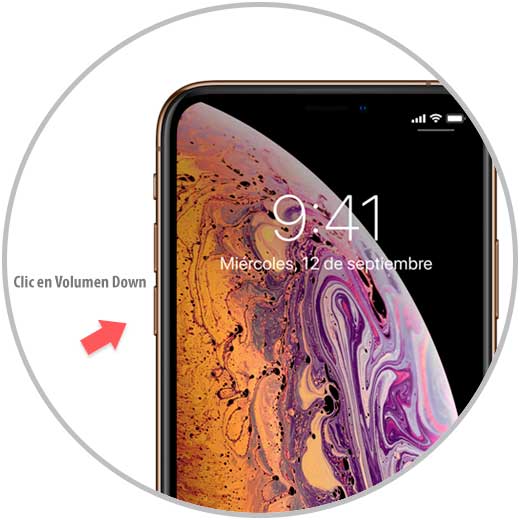Ahora y de forma inmediata a lo anterior, damos un toque rápido en “Bajar volumen”. De nuevo no buscamos mantener pulsado sino únicamente un clic rápido.