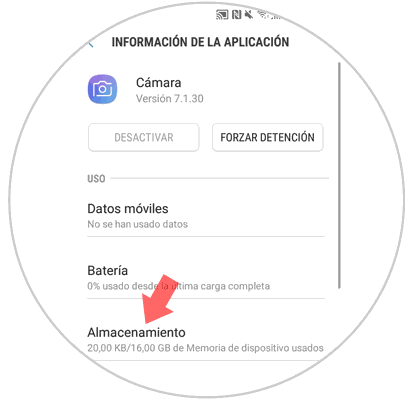 Dentro de las opciones de cámara, selecciona “Almacenamiento”.