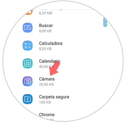 Verás el listado de aplicaciones. Desliza hasta la opción cámara y pulsa aquí.