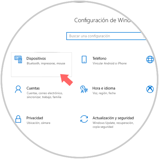 Para activar esta función en Windows 10 debemos ir al menú "Inicio" y allí seleccionar la utilidad "Configuración". Allí seleccionamos la categoría "Dispositivos".