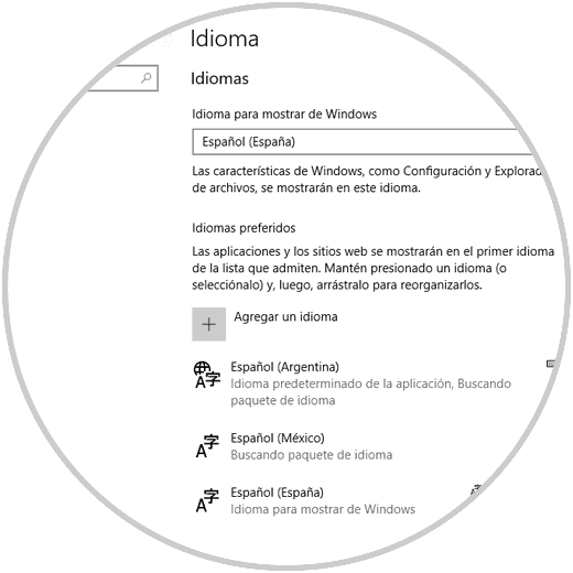 Windows 10 admite hasta tres idiomas de escritura latina para las tareas de predicción de texto en varios idiomas. Estos idiomas deben ser añadidos en la configuración del sistema del equipo en la categoría "Hora" e "Idioma"/ "Idioma":