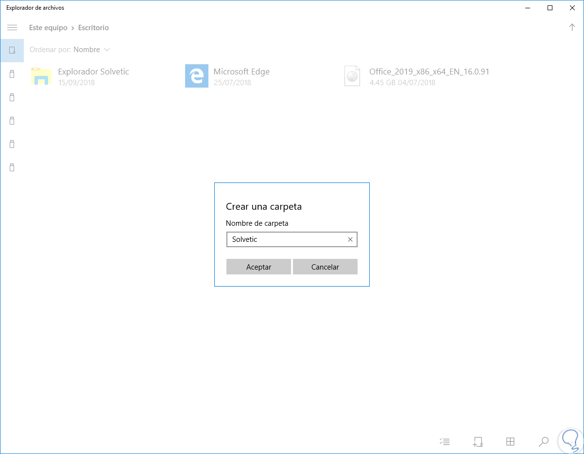 Al acceder a alguna de las carpetas disponibles tendremos opciones como: Crear carpetas pulsando en la barra lateral ubicada en la parte inferior: