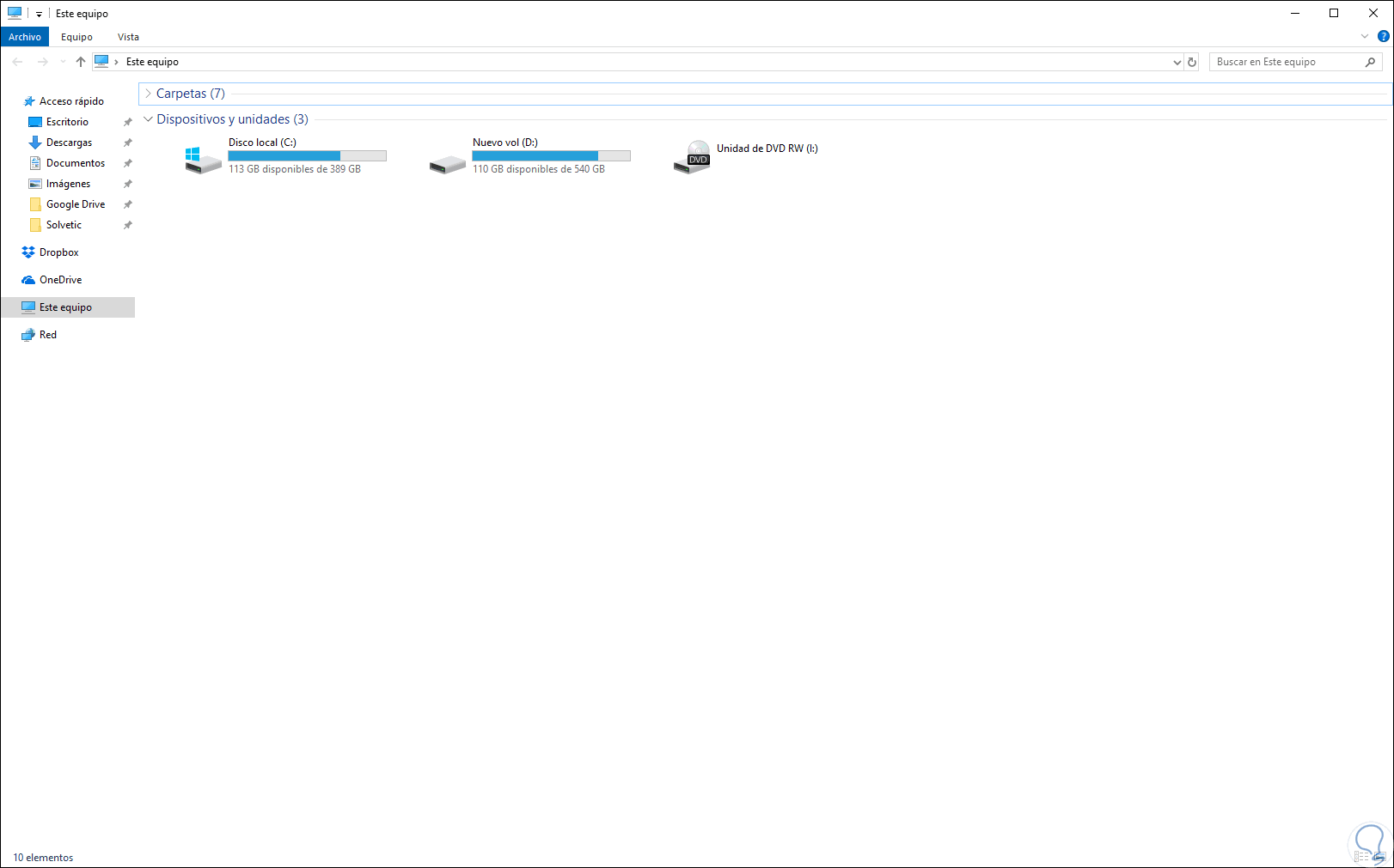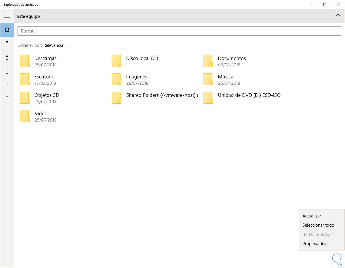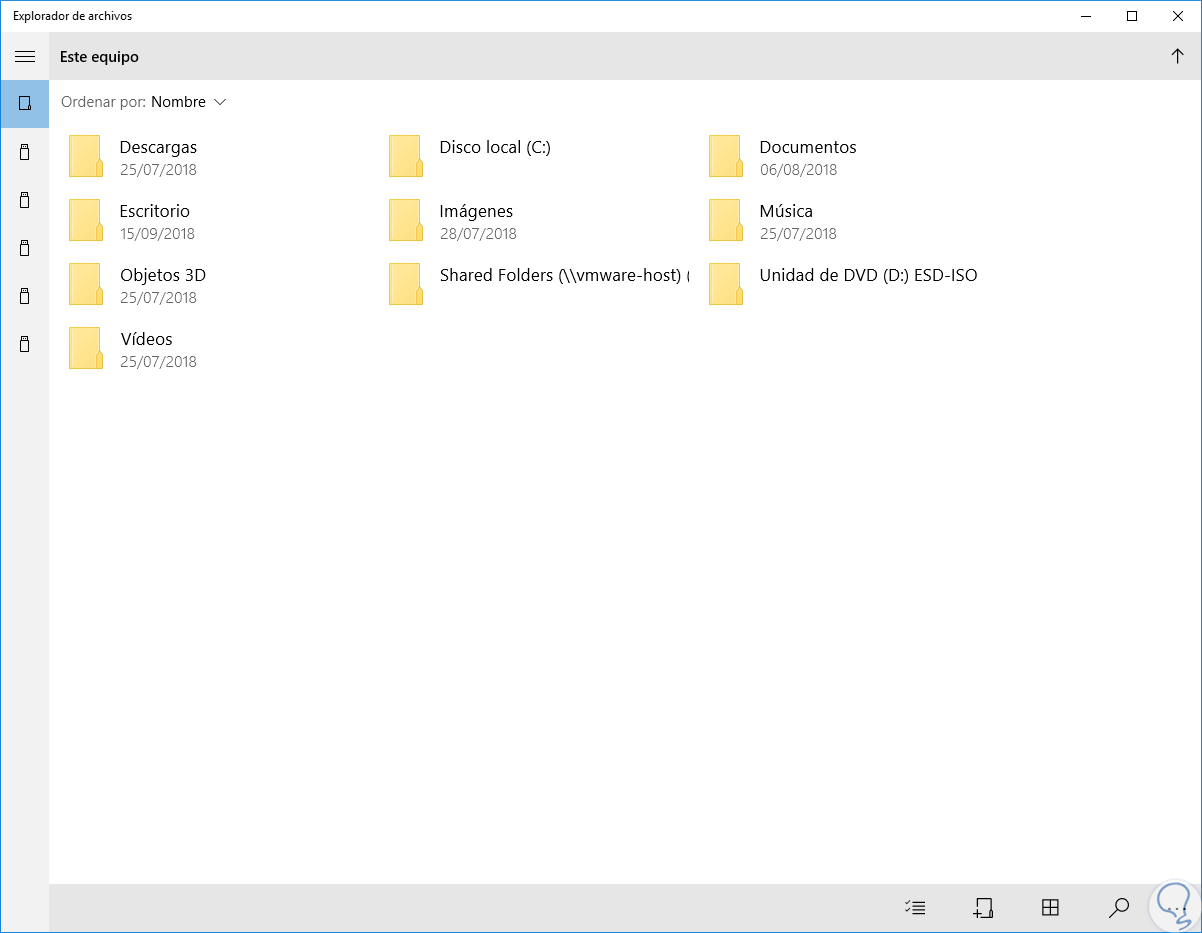 Al dar doble clic sobre este, será desplegado el nuevo explorador que Microsoft introducirá en las futuras ediciones de Windows 10, el aspecto actual es el siguiente: