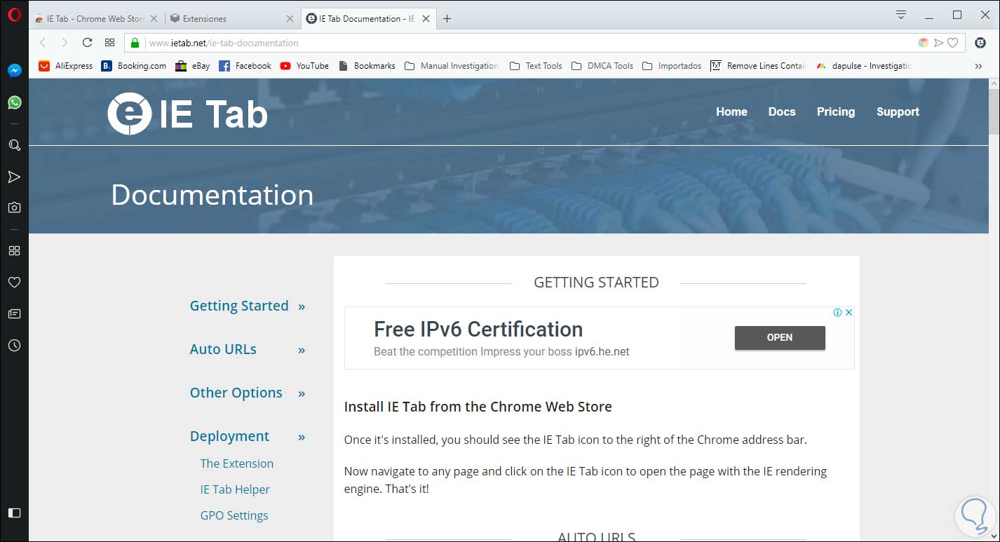Cuando finalice la instalación y sea agregada la extensión IE Tab a Google Chrome, seremos redireccionados a la documentación de IE Tab.
