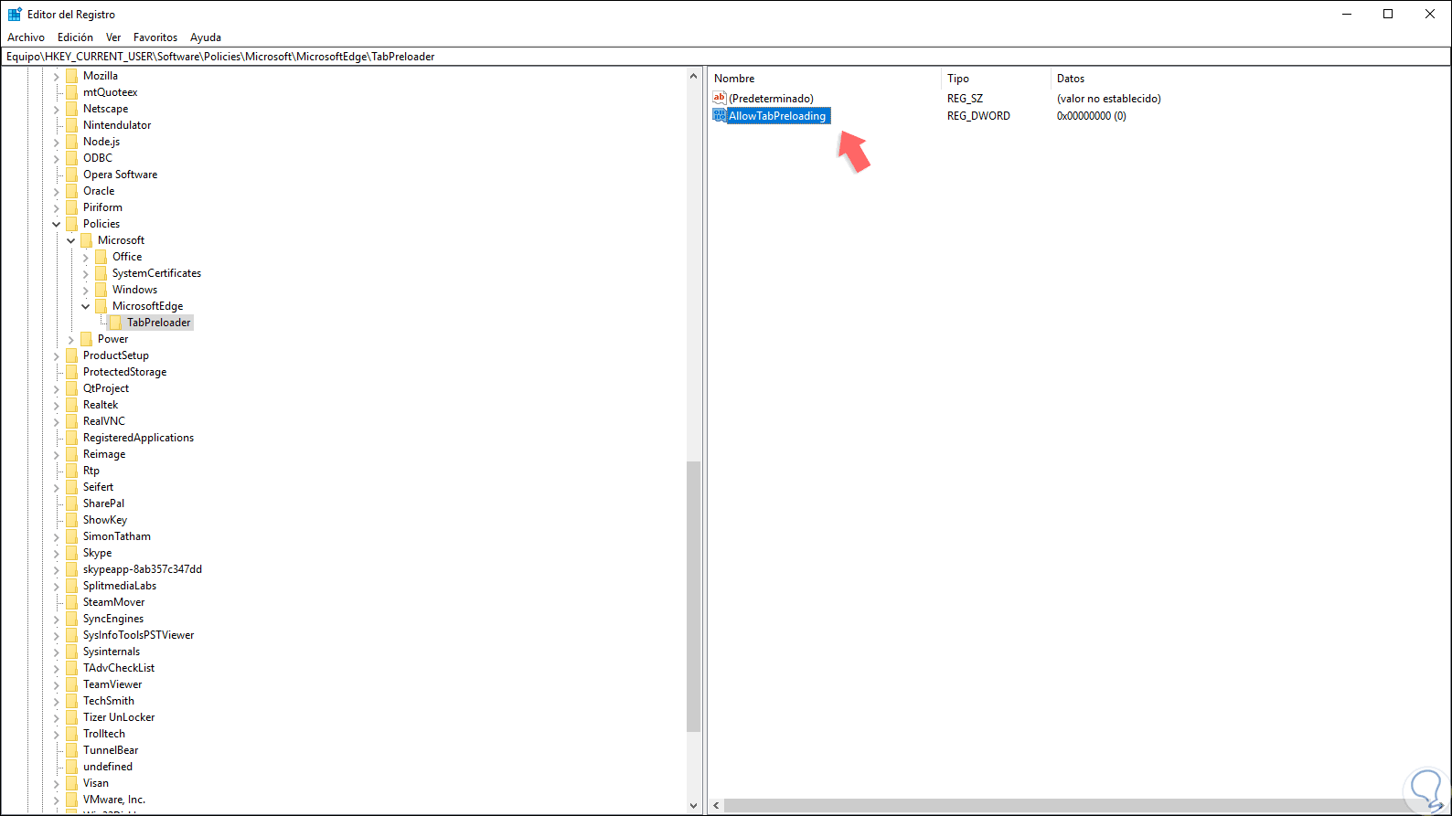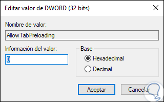 Este nuevo valor será llamado “AllowTabPreloading”: