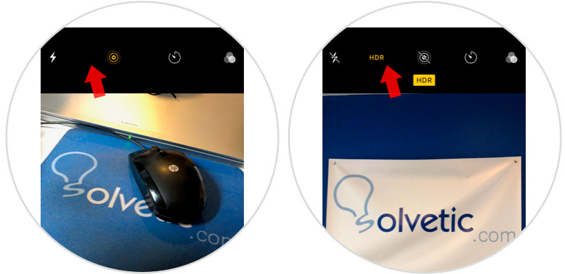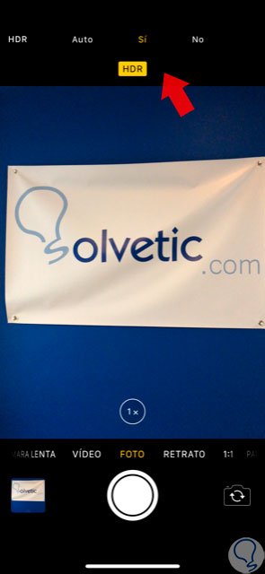 Ahora lo que debemos hacer es volver de nuevo a nuestra cámara y comprobar que en la parte superior tenemos la opción de decidir si queremos que la foto se realice con HDR o no.