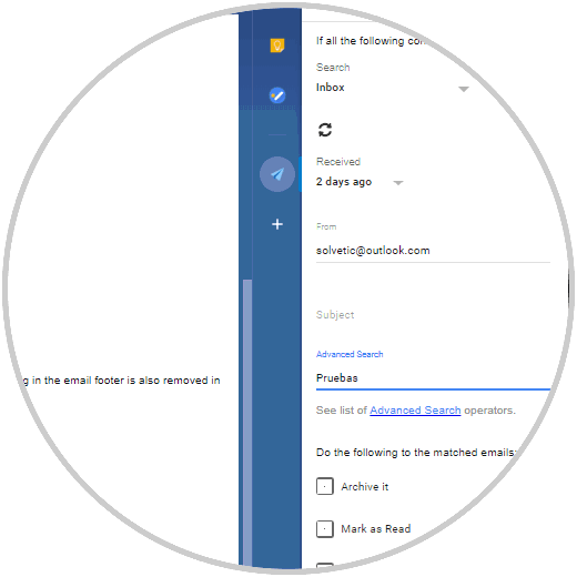 En los campos From definiremos, si es necesario, el remitente del correo, y en el campo Subject definimos el asunto del correo si deseamos eliminar correos específicos.