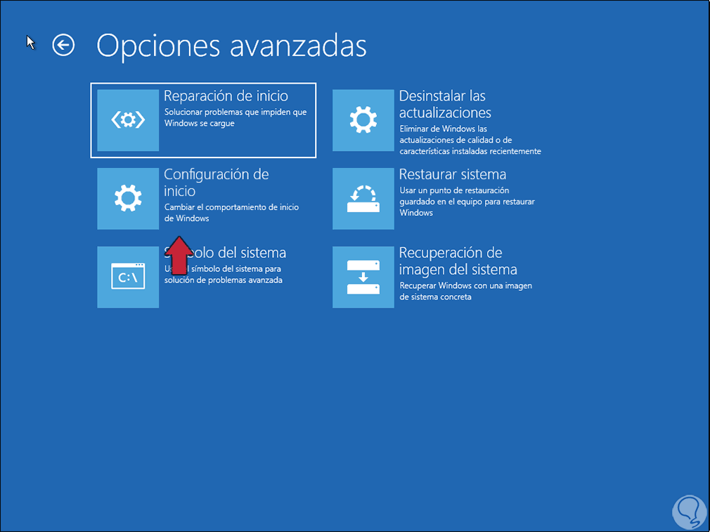 Es posible que también busques las opciones avanzadas de arranque que nos permiten realizar cambios en Windows 10 como una reparación de inicio Windows 10. Para ello haremos lo siguiente: